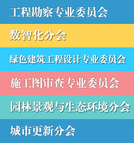 協會簡介 協會領導 組織結構 協會章程 協會會員 加入協會 會員變更 工程勘察設計專業委員會 BIM專業委員會 綠色建筑工程設計專業委員會 施工圖審查專業委員會 園林景觀與生態環境分會城市更新分會